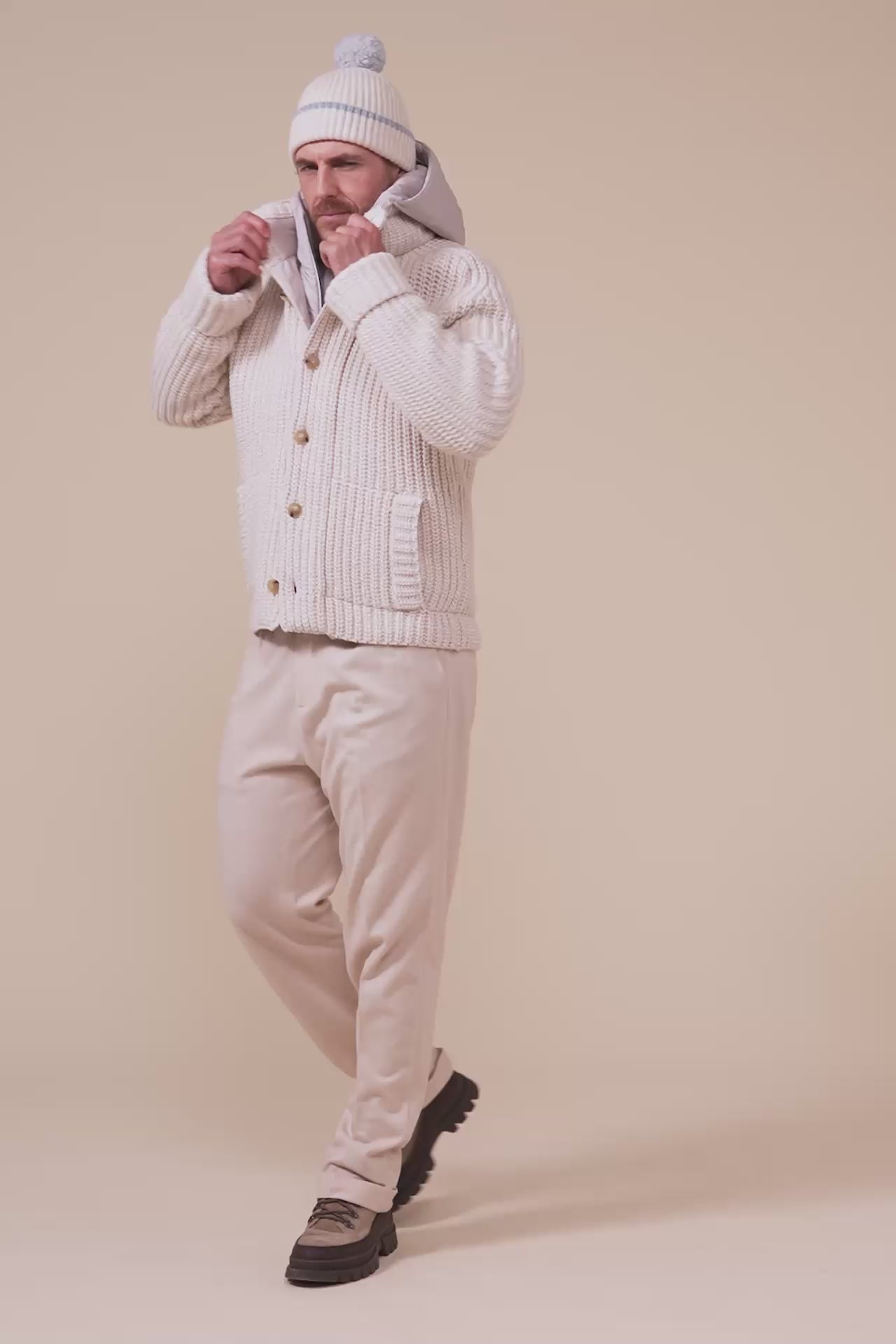 A winter essential elevated through craftsmanship, the Alfredo beanie is knitted in pure cashmere, offering exceptional warmth and softness. The English rib pattern adds texture and refinement and the delicate pom-pom crowns the design. A quietly precious accessory for the colder season.