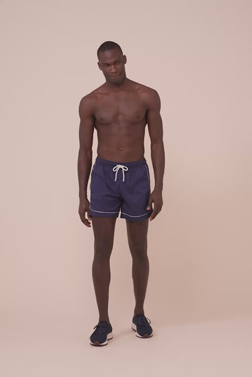 Inspired by iconic 1970s beachwear, the Galapagos swim trunks stand out with a clean silhouette and refined white border detailing. A timeless summer essential with a subtle vintage attitude.