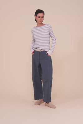 Kahlo Marble Cashmere and Linen Striped Boatneck