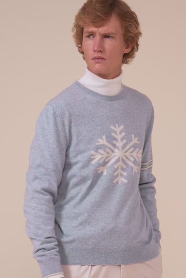 Knitted from the finest cashmere in a high-gauge plain stitch, the Argentina Peak crewneck revisits vintage alpine aesthetics in a modern style. Inspired by the iconic skiwear of the Seventies, it features a refined snowflake intarsia motif on the front, paired with two contrasting stripes on the left sleeve. The fit is regular and comfortable, designed to layer with ease while maintaining a clean, essential silhouette.